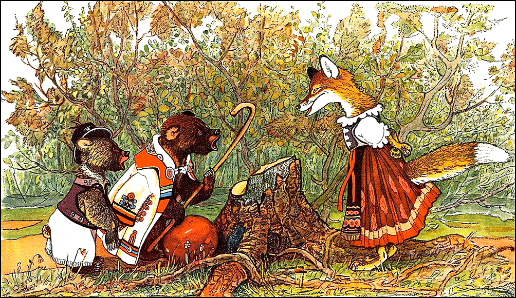 — Ну что ж, - сказала лиса, - хоть и помалу, да зато поровну! Приятного вам аппетита, медвежата! — И, помахав хвостом, она убежала.